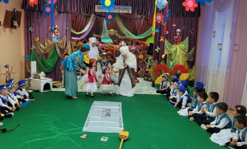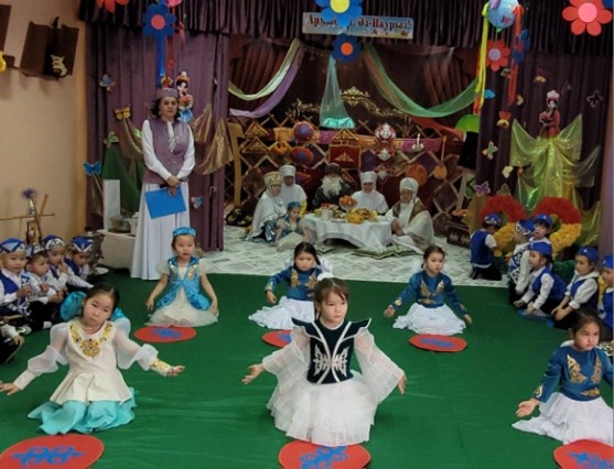 «Бөбек» бөбекжай-бақшасында 2024 жылдың 19 наурыз күні тәрбиеші Н.Сраилова бөбекжай тәрбиеленушілерінің және ата-аналардың қатысуымен «Армысың, Әз наурыз!» атты тақырыбында мерекелік ертеңгілік ұйымдастырып өткізді. Мақсаты: «Наурыз» мейрамы туралы түсінік беру арқылы қазақ халқының салт - дәстүрін көрсету және оны құрметтей білуге үйрету. Наурыз мерекесін ұлттық салт - дәстүрімізбен, әдет-ғұрпымызбен байланыстыра отырып насихаттап, ұрпақтардың өз ұлтына деген сүйіспеншілігін арттыру. Наурыз мерекесінің мән – мағынасын балаларға түсіндіру, ақ тілек, бата, наурыз көже, құт – береке ұғымдарын қалыптастыру, жақсылыққа адамгершілеке тәрбиелеу.