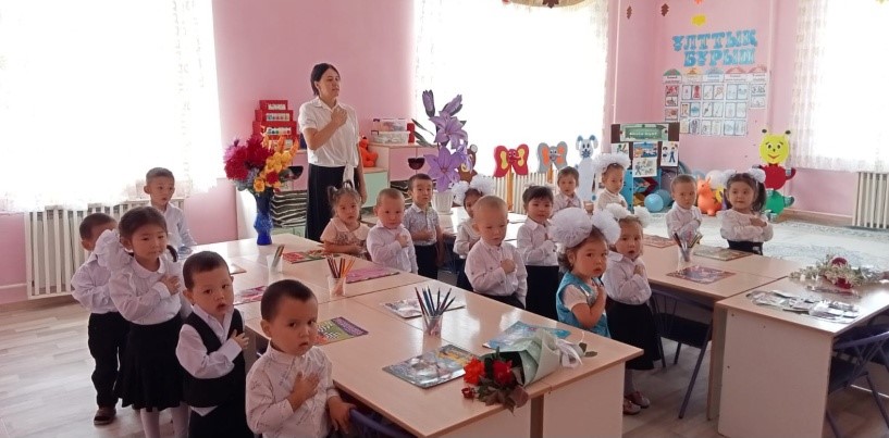 Мақсаты: Балаларға Қазақстан Республикасының Мемлекеттік рәміздері Елтаңба, Ту, Гимн туралы түсініктерін нығайту. Отансүйгіштікке, адамгершілікке, Отанына, халқына адал қызмет етуге, рәміздерді қастерлеп, құрметтеуге, тарихын білуге тәрбиелеу.